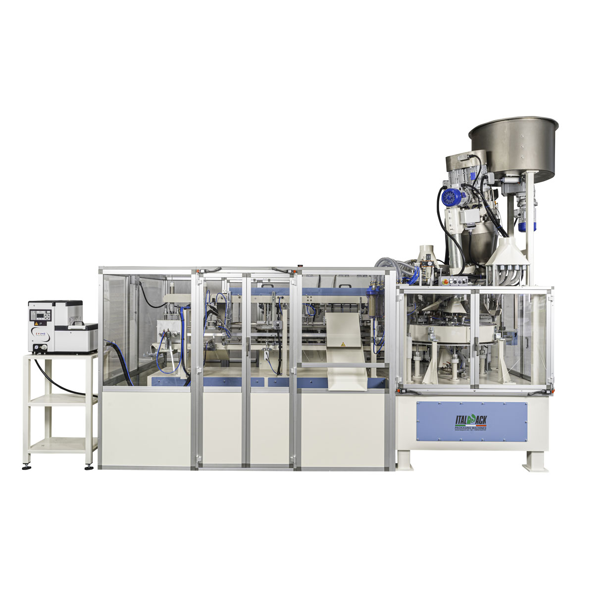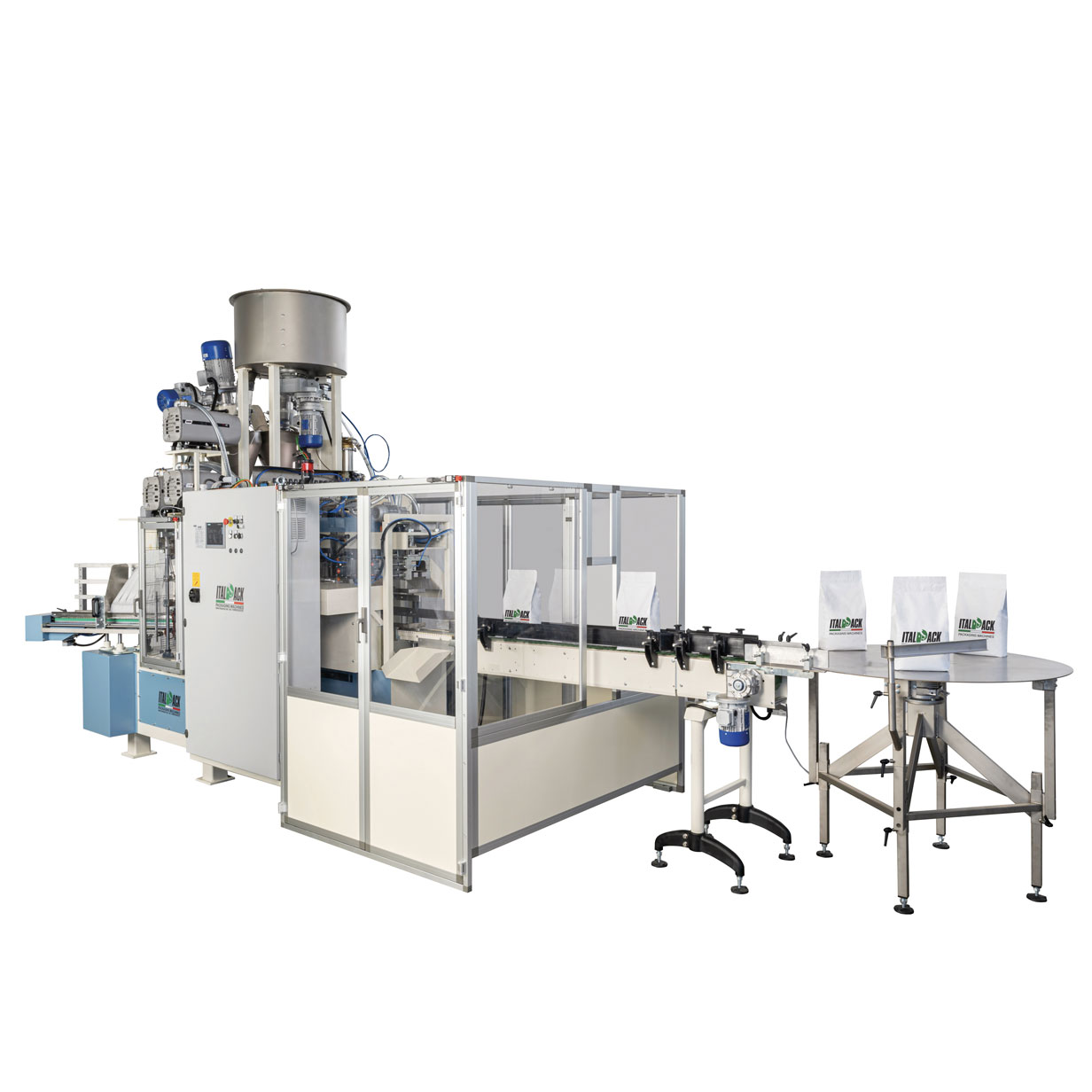 Italpack progetta e realizza confezionatrici automatiche di alta precisione, pensate per il riempimento e la chiusura di sacchetti di carta preformati a fondo quadro. Le nostre soluzioni rispondono alle esigenze di aziende che lavorano prodotti polverosi e granulari, garantendo affidabilità, produttività e qualità costante.